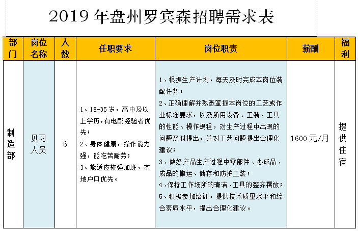 詳見(jiàn)附件一:2019年盤州羅賓森招聘需求表