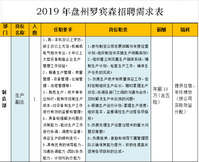 詳見附件一:2019年盤州羅賓森招聘需求表